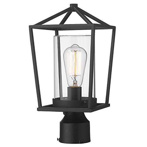 houzz Emliviar Outdoor Light Post Lantern, 1-Light Exterior Post Light in Black Finish with Clear Glass, 20065P BK